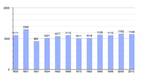 Los datos demográficos contemplados en este gráfico de la comuna de Saint-Martin-de-la-Place[4]se han cogido de 1800 a 1999 de la página francesa EHESS/Cassini, y los demás datos de la página del INSEE.[5]