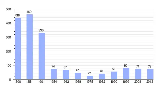 Gráfica de evolución demográfica de Saint-Maurice-de-Ventalon entre 1800 y 2013 |