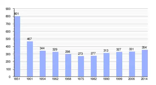 Los datos demográficos contemplados en este gráfico de la comuna de Saint-Michel-des-Andaines[4] se han cogido de 1800 a 1999 de la página francesa EHESS/Cassini, y los demás datos de la página del INSEE.[5]