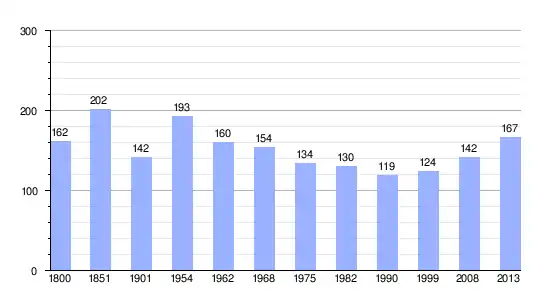 Gráfica de evolución demográfica de Saint-Nicolas-d'Attez entre 1800 y 2013 |