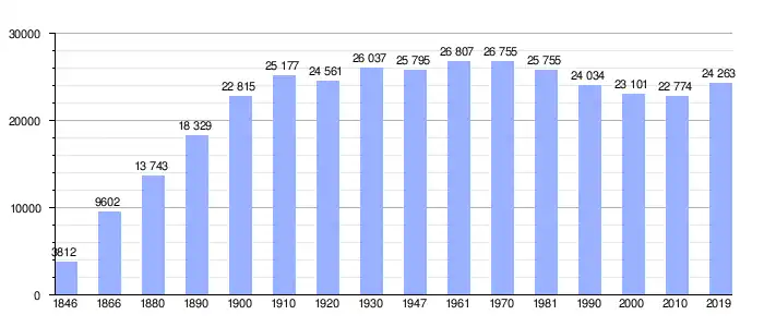 Todos los datos históricos relativos al actual municipio, el siguiente gráfico refleja su evolución demográfica, incluyendo municipios después de efectuada la fusión el 1 de enero de 1977.