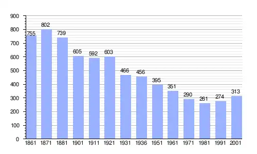Gráfica de evolución demográfica de Saint-Nicolas entre 1861 y 2001 |