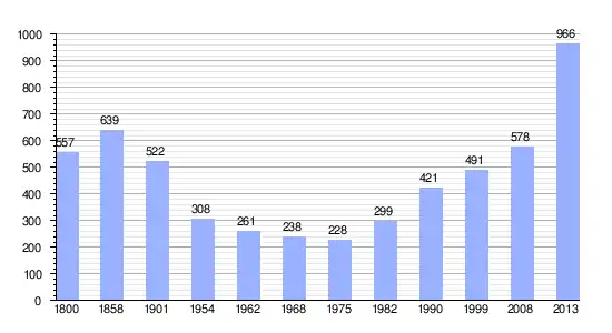 Los datos demográficos contemplados en este gráfico de la comuna de Saint-Offenge-Dessous[5] se han cogido de 1800 a 1999 de la página francesa EHESS/Cassini, y los demás datos de la página del INSEE.[6]