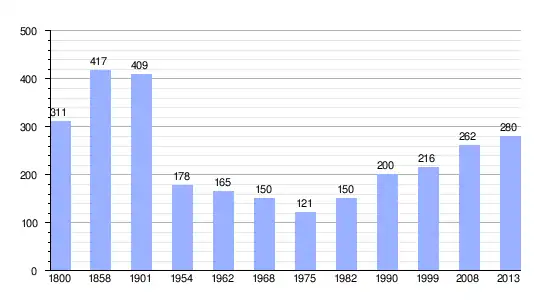 Gráfica de evolución demográfica de Saint-Offenge-Dessus entre 1800 y 2013 |