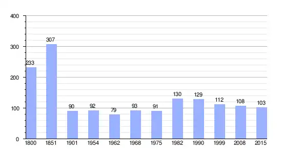 Los datos demográficos contemplados en este gráfico de la comuna de Saint-Ouen-sur-Maire[5]se han cogido de 1800 a 1999 de la página francesa EHESS/Cassini, y los demás datos de la página del INSEE.[6]