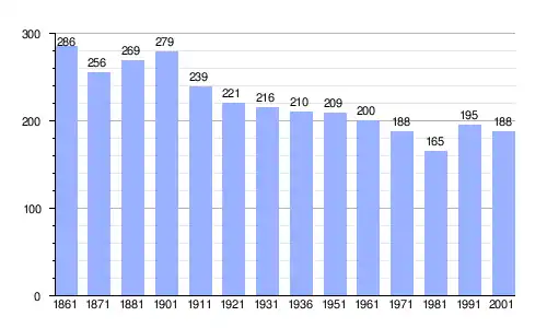 Gráfica de evolución demográfica de Saint-Oyen entre 1861 y 2001 |