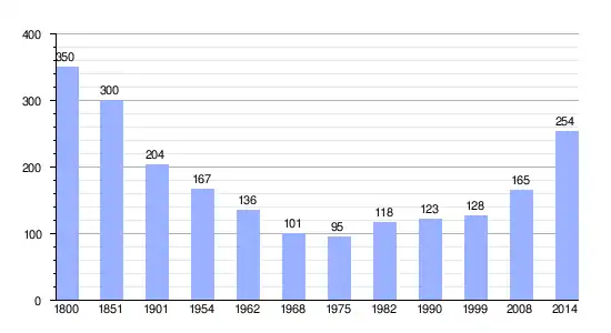 Los datos demográficos contemplados en este gráfico de la comuna de Saint-Pierre-Lavis[4] se han cogido de 1800 a 1999 de la página francesa EHESS/Cassini, y los demás datos de la página del INSEE.[5]