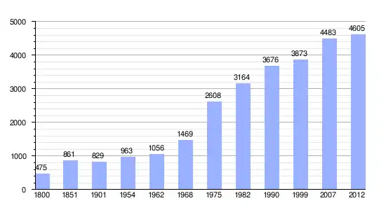 Gráfica de evolución demográfica de Saint-Pierre-d'Irube entre 1800 y 2012 |