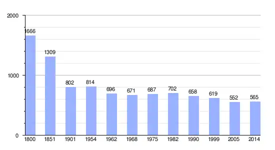Los datos demográficos contemplados en este gráfico de la comuna de Saint-Privat-des-Prés[4] se han cogido de 1800 a 1999 de la página francesa EHESS/Cassini, y los demás datos de la página del INSEE.[5]