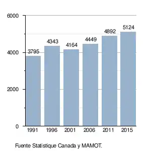 b. Statistique Canada, Profils des communautés de 2001 : Saint-Roch-de-l’Achigan, Ottawa. 01/02/07. Consultado el 26 de enero de 2016. (en francés)