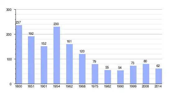 Los datos demográficos contemplados en este gráfico de la comuna de Saint-Rome-du-Dolan[4] se han cogido de 1800 a 1999 de la página francesa EHESS/Cassini, y los demás datos de la página del INSEE.[5]