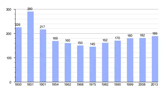 Los datos demográficos contemplados en este gráfico de la comuna de Saint-Sulpice[4] se han cogido de 1800 a 1999 de la página francesa EHESS/Cassini, y los demás datos de la página del INSEE.[5]