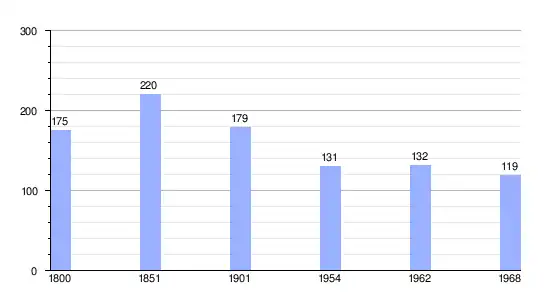 Los datos demográficos contemplados en este gráfico de la comuna de Saint-Symphorien-les-Buttes[4] se han cogido de 1800 a 1968 de la página francesa EHESS/Cassini.