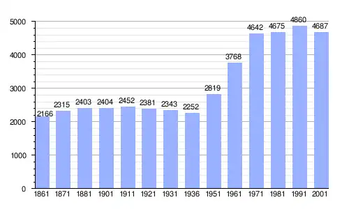 Gráfica de evolución demográfica de Saint-Vincent entre 1861 y 2001 |
