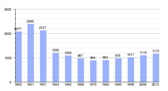 Gráfica de evolución demográfica de Saint-Antoine-l'Abbaye entre 1800 y 2013 |