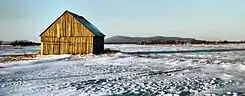 ![]() Antiguo ganero en Sainte-Brigide, en segundo plano el monte Yamaska