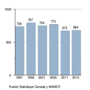 b. Statistique Canada, Profils des communautés de 2001 : Sainte-Christine, Ottawa. 01/02/07. Consultado el 13 de noviembre de 2015. (en francés)