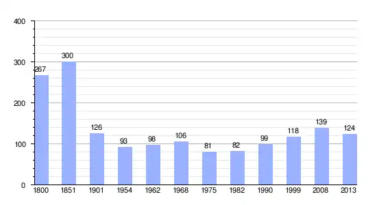 Gráfica de evolución demográfica de Sainte-Marguerite-en-Ouche entre 1800 y 2013 |