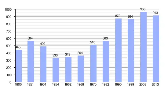Gráfica de evolución demográfica de Saints-Geosmes entre 1800 y 2013 |