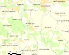 Saints es una población y comuna francesa, en la región de Isla de Francia, departamento de Sena y Marne, en el distrito de Meaux y cantón de Coulommiers.