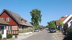 Se encuentra ubicada al este de la península de Jutlandia, a poca distancia al norte del fiordo de Horsens, junto a la costa del mar Báltico.