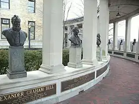 El Salón de la Fama para Americanos Ilustres o Salón de la Fama para Estadounidenses Ilustres es una galería de esculturas al aire libre ubicada en los terrenos del Bronx Community College en el Bronx, Nueva York. Es el primer salón de la fama en los Estados Unidos. Completado en 1900 como parte del campus de Universidad Heights de la Universidad de Nueva York,[2] la columnata de piedra de 192 metros rodea la biblioteca de la universidad y alberga 98 bustos de bronce de varios estadounidenses prominentes.[3] Diseñada por el arquitecto Stanford White, quien también diseñó la biblioteca, la estructura de Beaux Arts fue donada por Helen Gould, y se inauguró formalmente el 30 de mayo de 1901.[4] La Universidad de Nueva York, bajo graves dificultades financieras, se vio obligada a vender el campus en 1973 a la Universidad de la Ciudad de Nueva York y se convirtió en el Bronx Community College.[5] Aunque el renombre del Salón se ha desvanecido, su arquitectura permanece y se erige como un santuario nacional secular no solo para los grandes hombres (y algunas mujeres), sino también para los ideales de fama romanos tan vigentes a principios del siglo XX.[6]