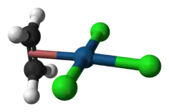 Se conoce la estructura del anión de la sal de Zeise. El etileno ocupa la cuarta posición de coordinación en el complejo cuadrado plano con el eje C-C perpendicular al plano platino-ligante. Con relación al etileno libre, el enlace C-C se elonga ligeramente (de 133.7 pm a 197.5 pm) y los hidrógenos se inclinan un poco hacia atrás con respecto al ordenamiento plano.[2]