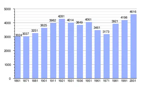 Gráfica de evolución demográfica de Sala Baganza entre 1861 y 2001 |