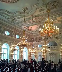 - Esta obra contiene una traducción derivada de «Španělský sál» de Wikipedia en checo, publicada por sus editores bajo la Licencia de documentación libre de GNU y la Licencia Creative Commons Atribución-CompartirIgual 3.0 Unported.