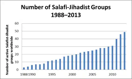 Según Seth G. Jones de la Rand Corporation en 2014 existían alrededor de 50 grupos salafistas yihadistas.[21]