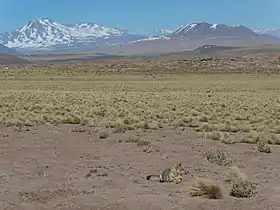 ![]() En los alrededores de Socaire, en el camino a la Laguna Miscanti, aprox. 4000 msnm. Un zorro andino relajado en el Altiplano con el Pular y Toloncha al fondo. El cerro Pular separa la cuencas hidrográficas de los salares de Pular y Atacama. El salar de Pular se ubica, visto en la foto, detrás del cerro Pular. | ||