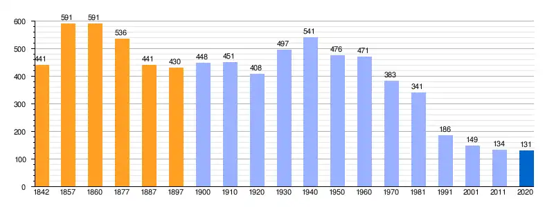 Población de derecho (1842-1897, excepto 1857 y 1860 que es población de hecho) según los censos de población del siglo XIX. Población de derecho (1900-1991) o población residente (2001-2011) según los censos de población del INE. Población según el padrón municipal de 2020 del INE. |