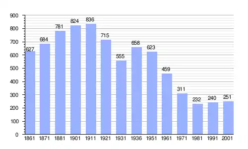 Gráfica de evolución demográfica de Salasco entre 1861 y 2001 |