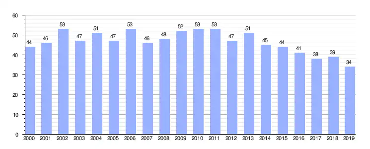 Población de derecho (2000-2010) según los censos de población del INE a 1 de enero de cada año.[3]