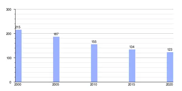 Gráfica de evolución demográfica de Salcedo (aldea) entre 2000 y 2020 |
