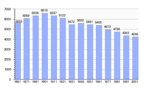 Gráfica de evolución demográfica de Sale entre 1861 y 2001 |