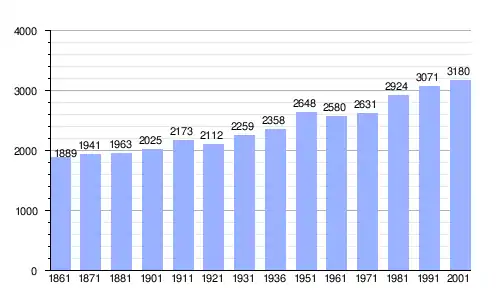 Gráfica de evolución demográfica de Sale Marasino entre 1861 y 2001 |