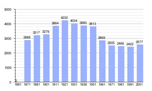 Gráfica de evolución demográfica de Saletto entre 1861 y 2001 |
