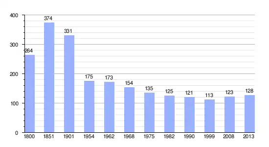 Gráfica de evolución demográfica de Saligos entre 1800 y 2013 |