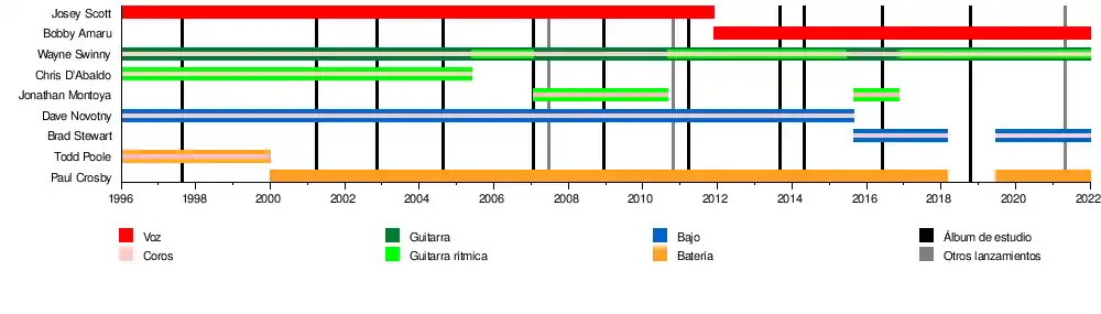 - Chris D'Abaldo: guitarra rítmica, coros (1996-2005)