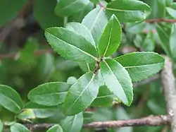 Es un arbusto o pequeño árbol con las ramitas pubescentes, estípulas diminutas. Pecíolo de 2-6 mm de largo. La lámina de 2,5-6,5 x 1,2-2,4 cm, margen denticulado, elípticas, oblongas u ovadas, obtusas, punta aguda y brillante por encima, más ligero en la parte inferior, pubescentes cuando jóvenes especialmente a lo largo de nervadura central, llegando a ser glabros. Los amentos aparecen después de las hojas. Los amentos masculinos de 2.5-7 x 0.4-0.7 cm, y los femeninos de 3,5-11,5 x 0,6-0,7 cm. El fruto es una cápsula.