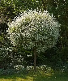 El cultivar 'Hakuro Nishiki' (sauce moteado) es ampliamente cultivado como planta ornamental por su variada vegetación, las hojas fuertemente moteadas con manchas de blanco y rosa pálido. Como su crecimiento es bastante débil y arbustivo, se vende injertado en la parte superior de un tallo recto de otro sauce.