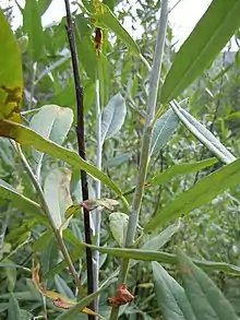 Salix: nombre genérico latino para el sauce, sus ramas y madera.[3]