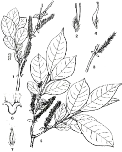 Salix: nombre genérico latino para el sauce, sus ramas y madera.[2]