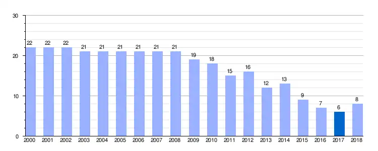 Gráfica de evolución demográfica de Salmeroncillos de Arriba entre 2000 y 2018 |
