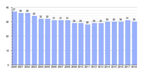 Gráfica de evolución demográfica de Salmonte entre 2000 y 2018 |