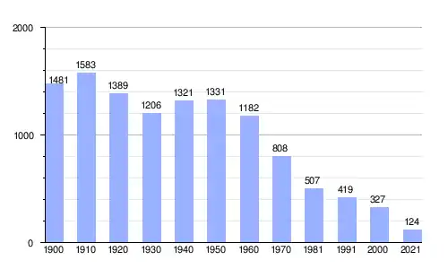 Gráfica de evolución demográfica de Salmoral entre 1900 y 2021 |