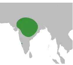 Se encuentra en el norte de la India en bosque caducifolios y manglares. No migra más allá de movimientos locales.