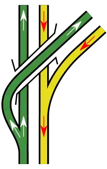 - Esta obra contiene una traducción derivada de «Flying junction» de Wikipedia en inglés, publicada por sus editores bajo la Licencia de documentación libre de GNU y la Licencia Creative Commons Atribución-CompartirIgual 3.0 Unported.