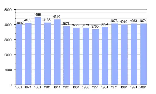 Gráfica de evolución demográfica de Saluggia entre 1861 y 2001 |